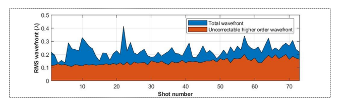 Figure 6. Wavefront RMS evolution at one shot per minute with active AO correction (300 mm amplifier). Image credit: THRILL Project Report (ELI Beamlines, 2024).