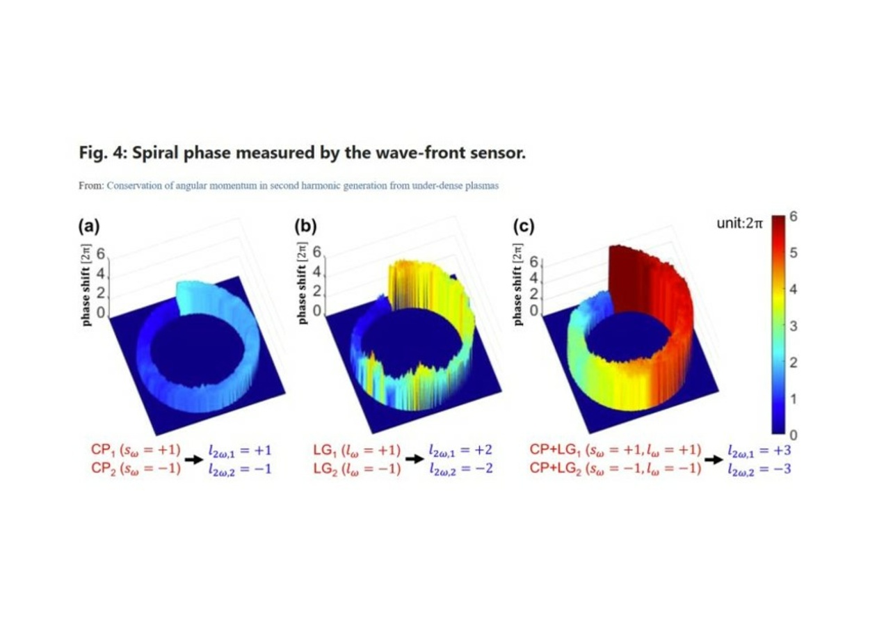 Researchers from Professor Joshi group at University of California, Los Angeles confirms total orbital angular momentum conservation. Pump beam with known spin and orbital angular momentum was used and the helical phase of the second harmonic radiation generated was measured using PHASICS SID4-HR wavefront sensor to observe interplay between spin and orbital angular momentum.
